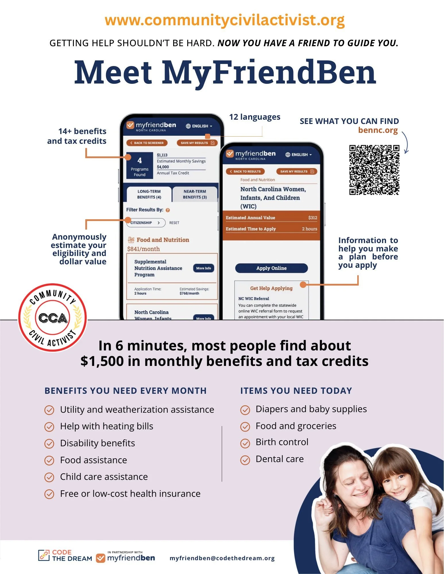 MyFriendBen is a FREE, private, 6-minute tool you can use on your phone to find out what benefits we can still qualify for!
